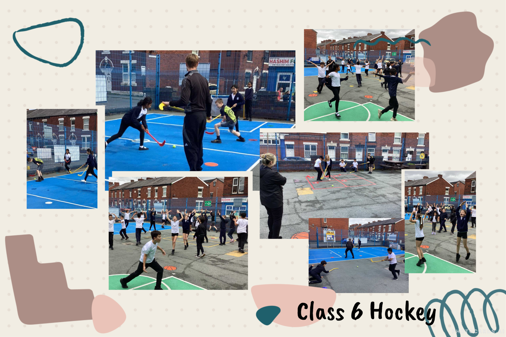 Making the most of the good weather this week, Class 6 enjoyed their hockey lesson outside.
