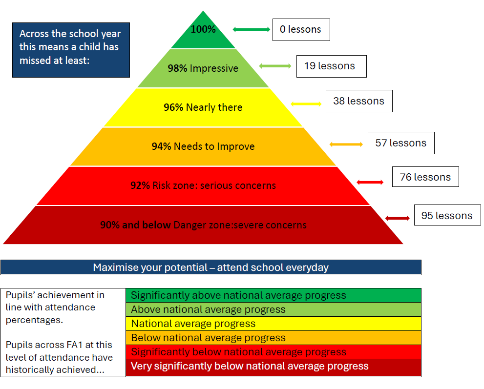 Attendance is everybody’s responsibility and Forward As One’s school senior leadership teams strive to build a culture where all staff are clear on their roles and responsibilities and therefore can be held to account. To enable all staff to fulfil their role, clear systems and procedures are implemented and are understood by all and applied consistently.