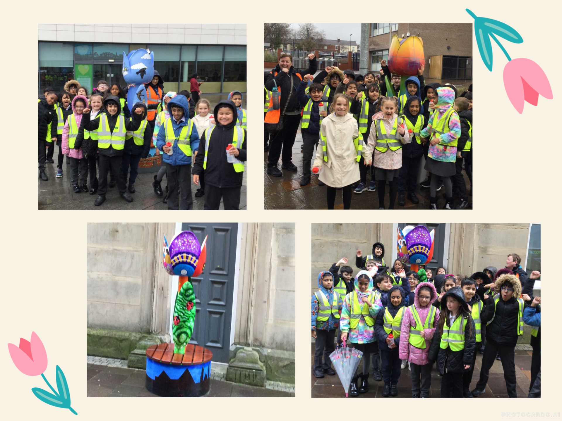 The rain didn't dampen spirits as Class 3 set off to find their Tulip this afternoon and they were not disappointed when they found it (as the map had promised) just outside the library. They enjoyed finding a few more of the nearby tulips as well. Thank you to the grown ups who came and supported us too.
