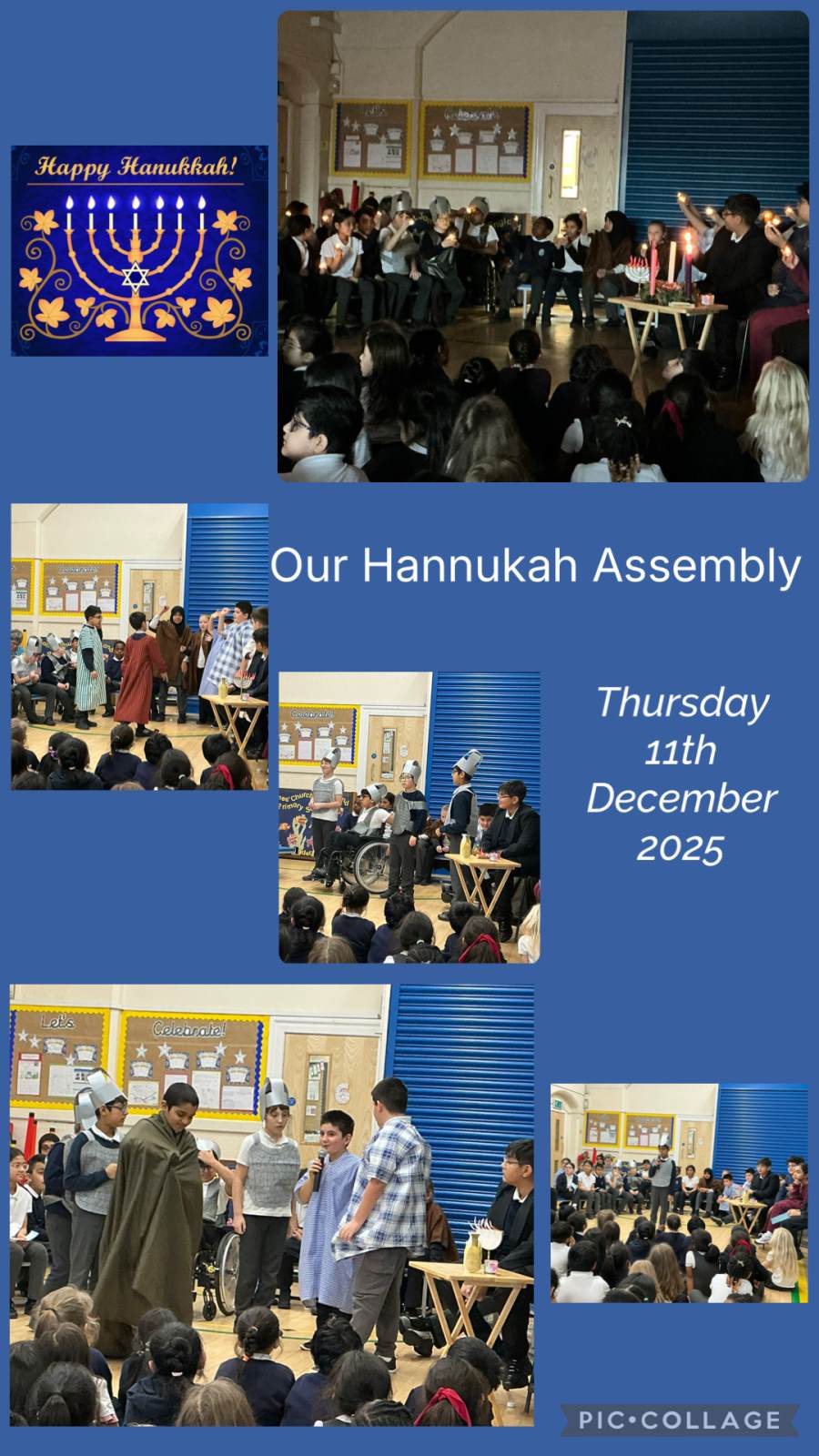 Class 5 shared the story behind the Jewish festival of Hanukkah with the whole school and their parents and carers.